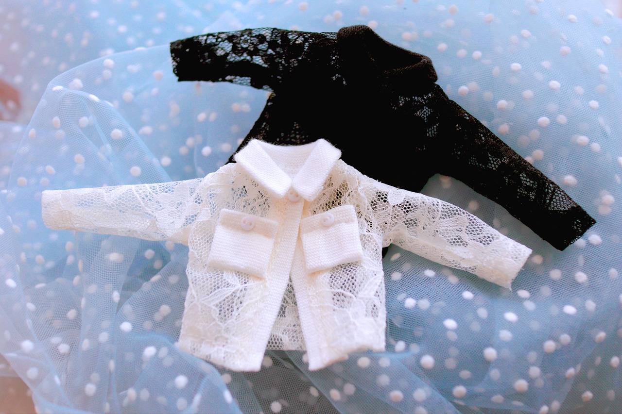 チェストポケットのレースブラウス ホワイト 22cmドール