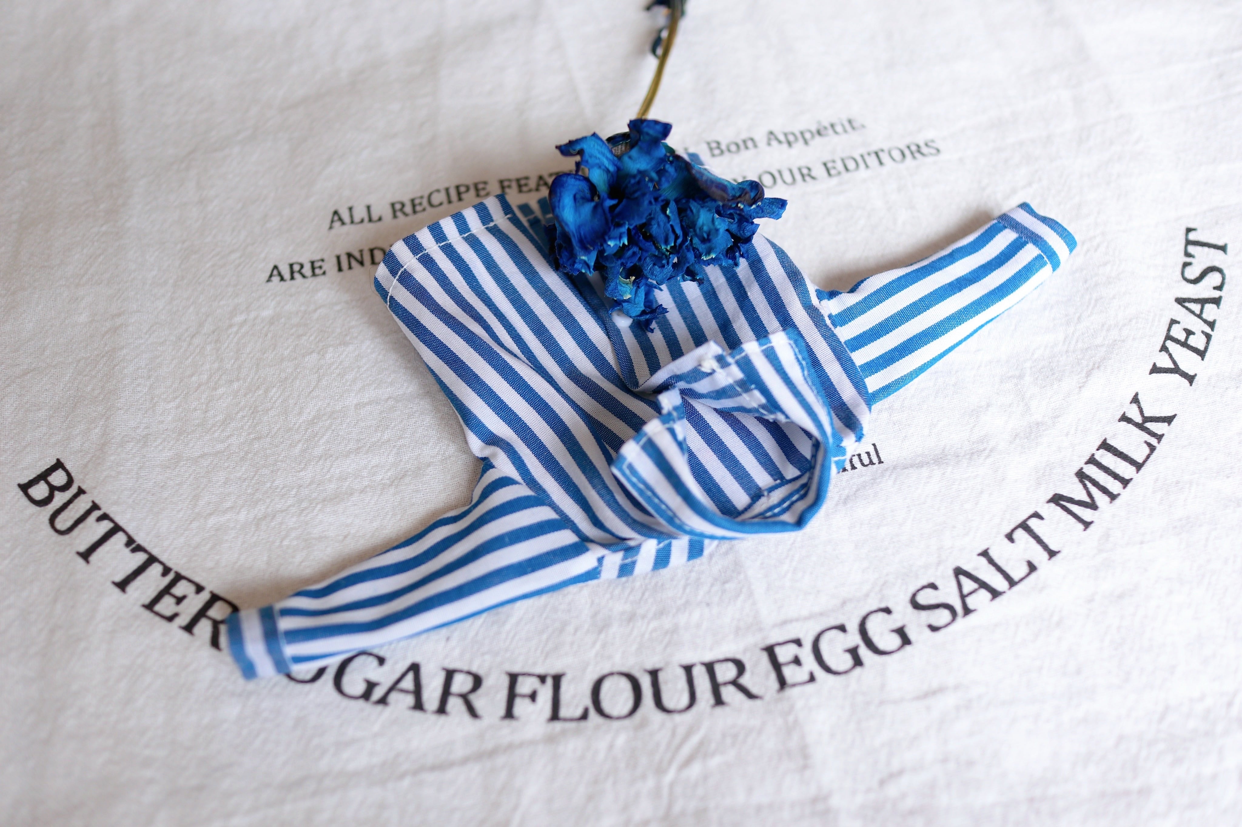 ブルーの爽やかなストライプ生地でシャツを製作しました。定番シャツなので、どんなコーデにも◎