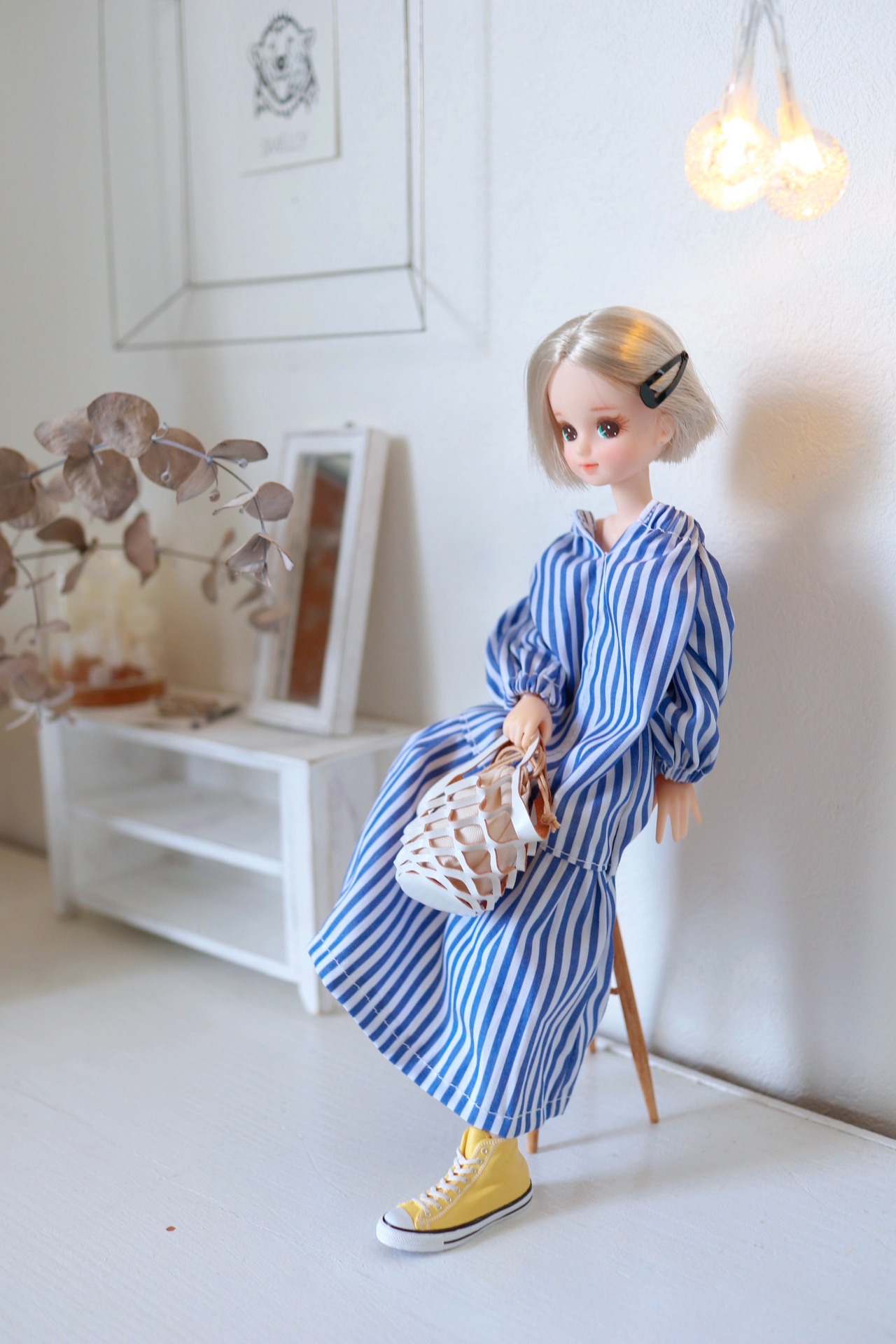 ストライプ オフショルワンピ ブルー 22cmドール