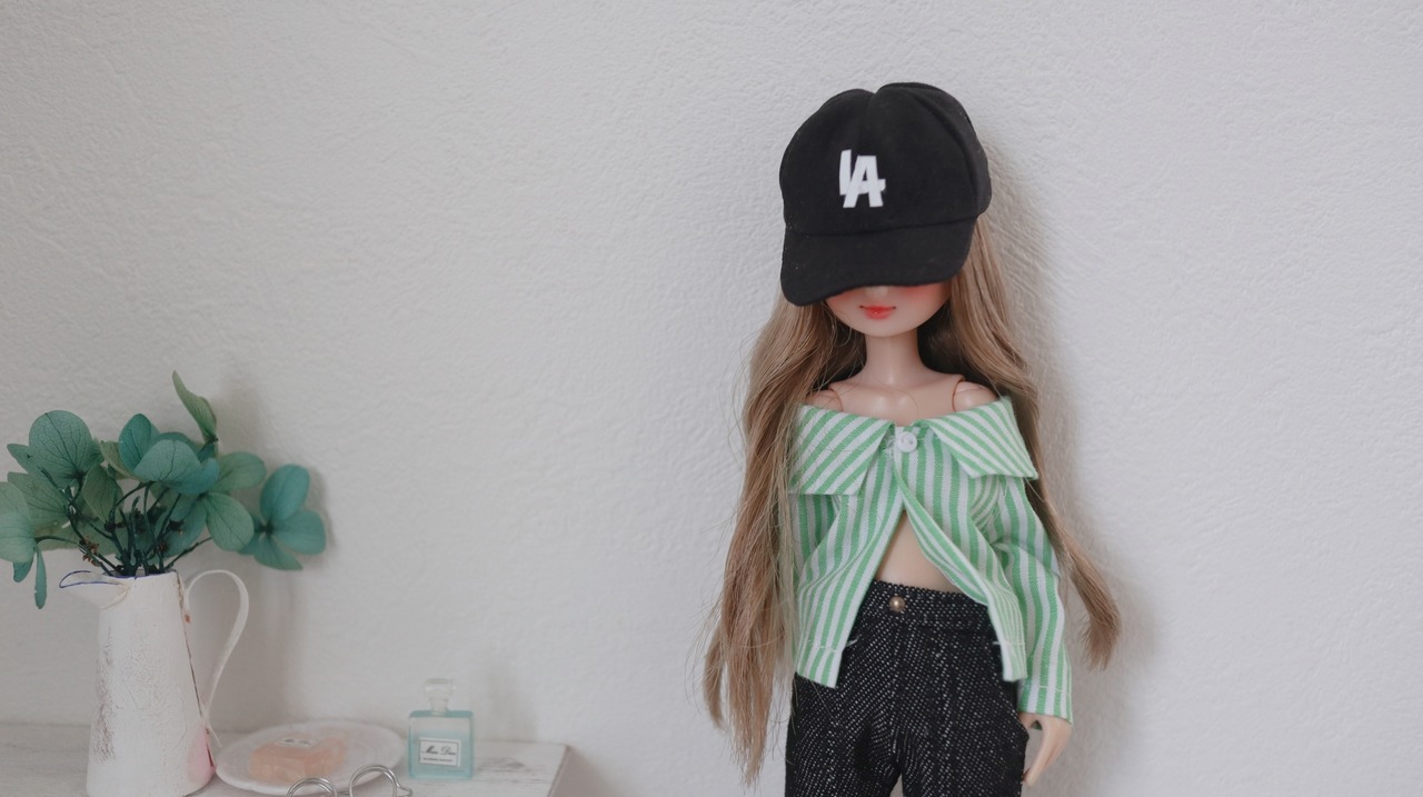 ライムグリーンストライプオフショルブラウス 22cmドール