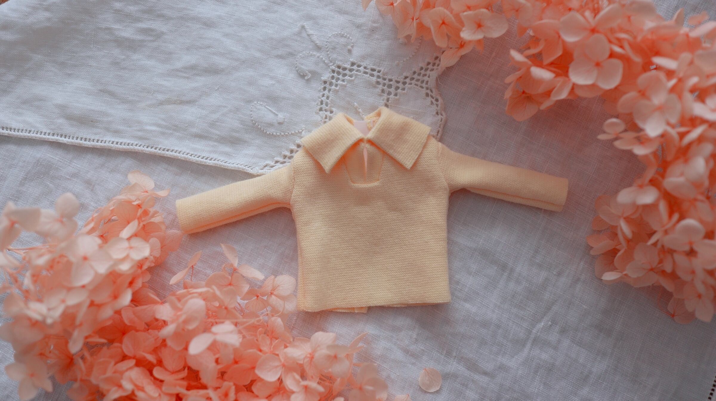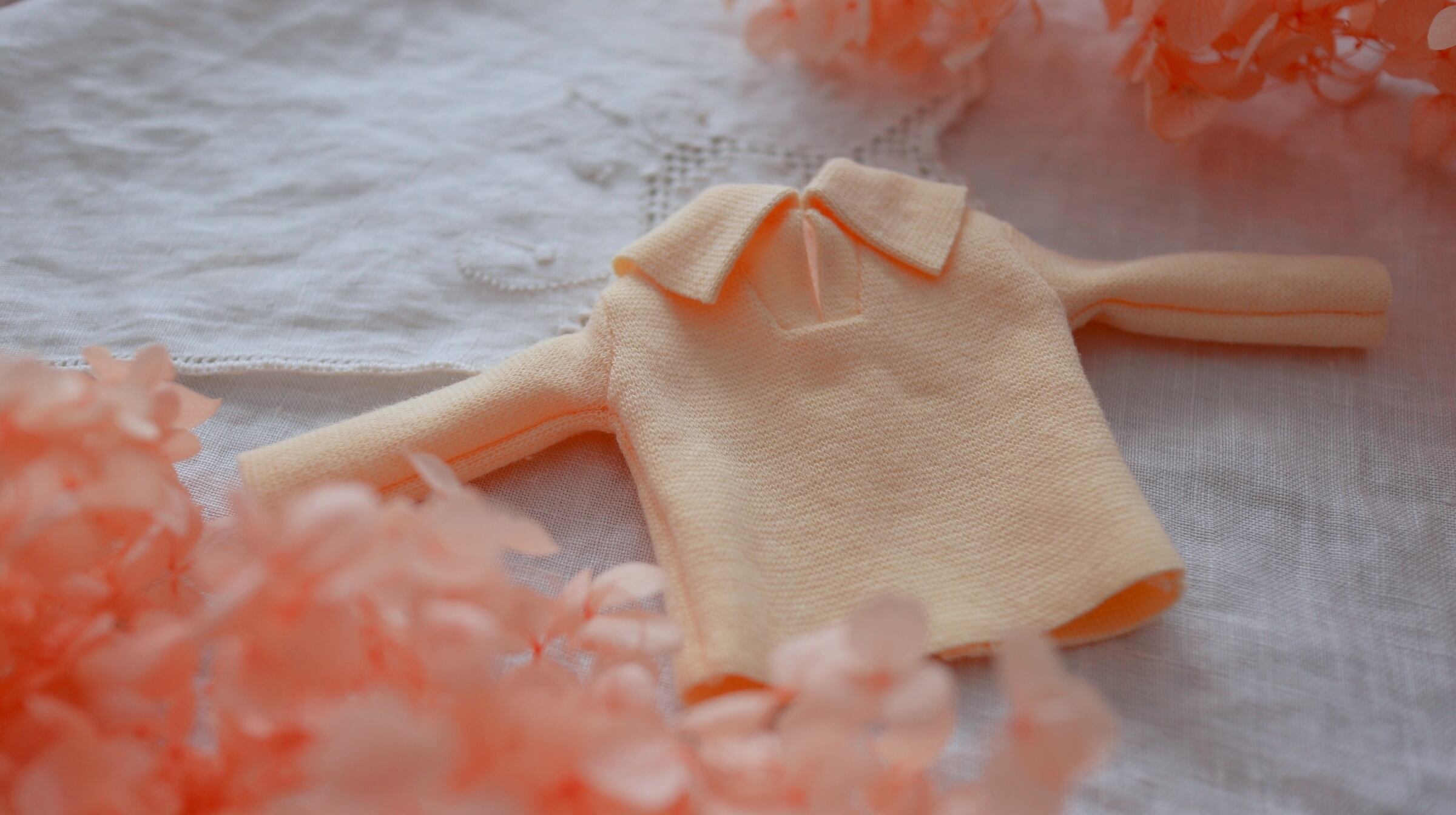 ドール用、ニット生地でビッグカラーのトップスを製作しました。