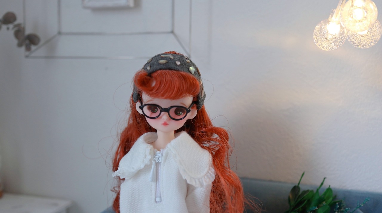 ハーフジップニットワンピース ギャザーレース襟 22cmドール