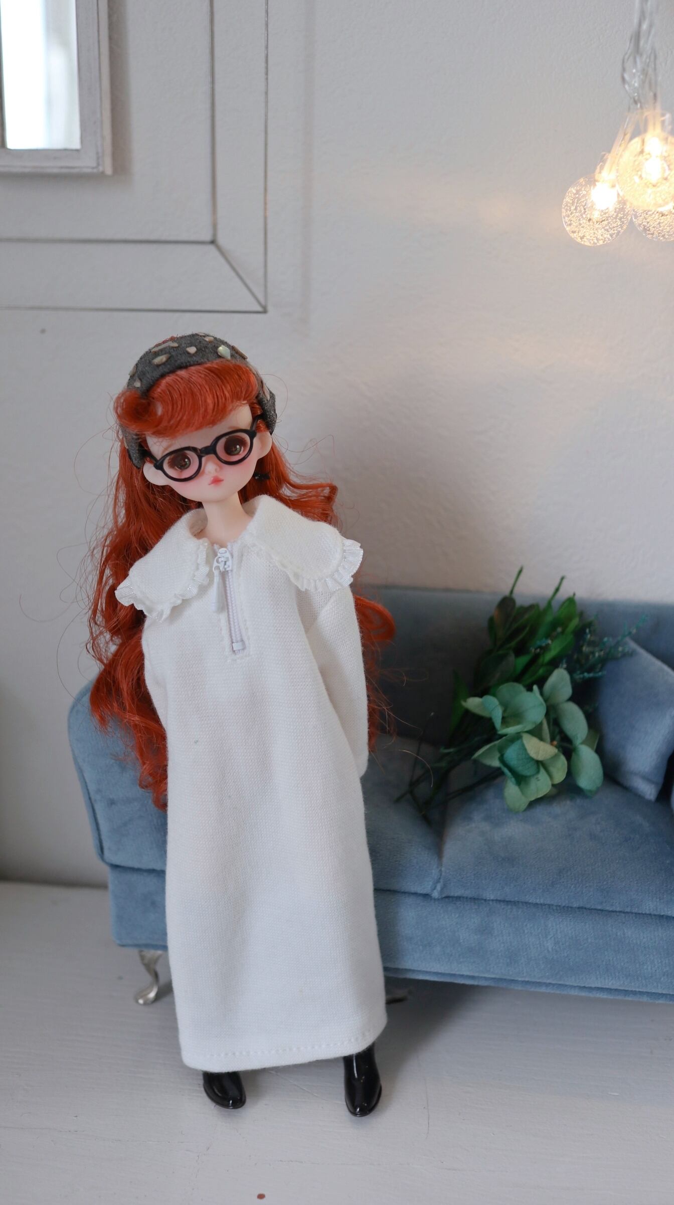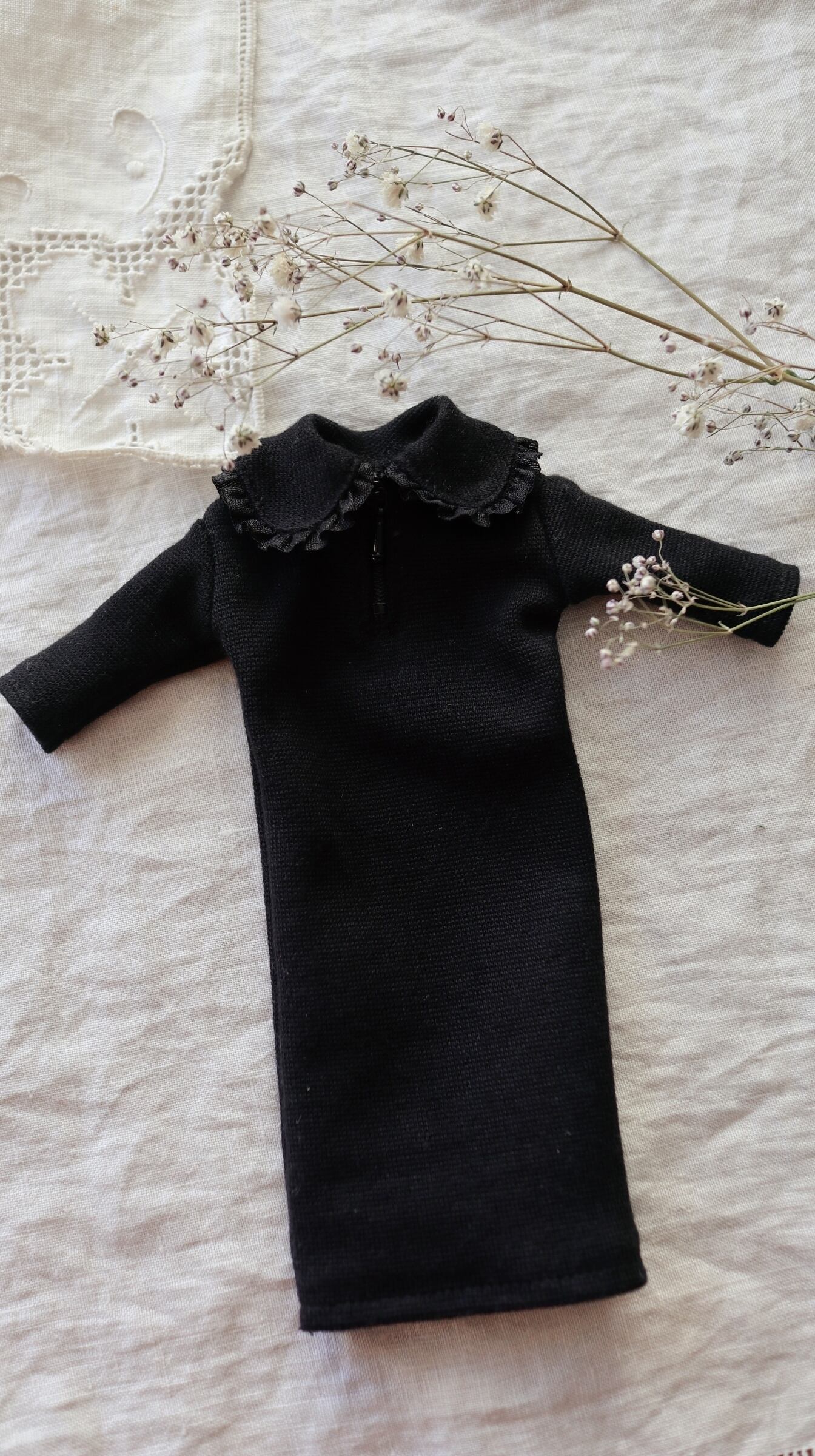 ハーフジップニットワンピース ギャザーレース襟 22cmドール